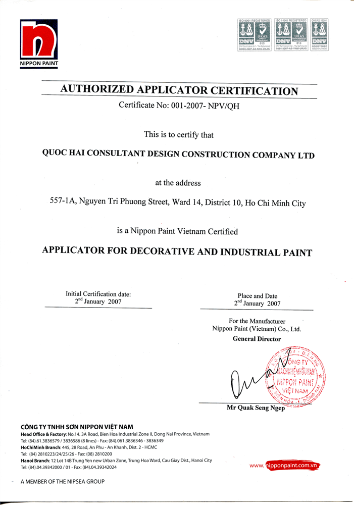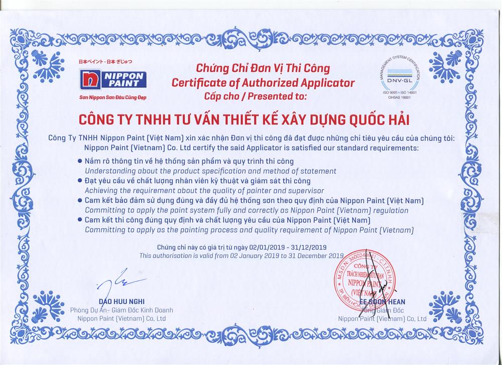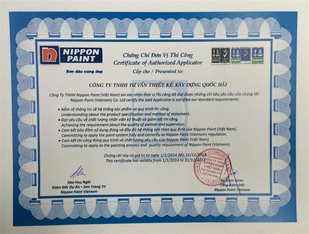 GIẤY XÁC NHẬN NHÀ THẦU THI CÔNG SƠN NIPPON.