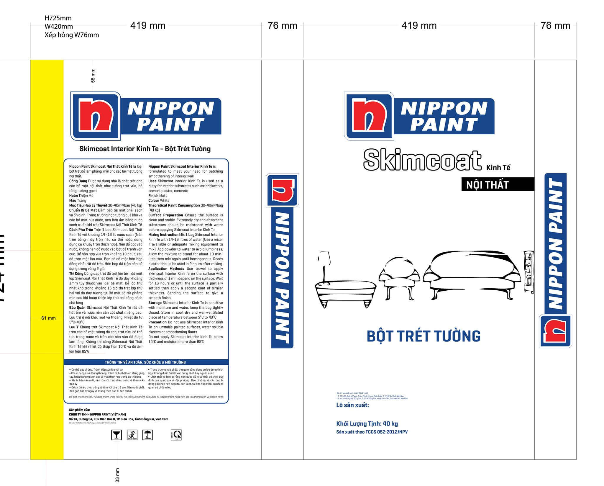 Interior Skimcoat là loại bột trét để làm phẳng, mịn cho các bề mặt tường nội thất. Interior Skimcoat được sử dụng như là chất trét cho các bề mặt nội thất như: